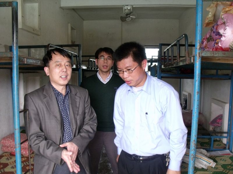 在新寮中学董事长的陪同下,海大一行参观了环境干净卫生、饭菜丰盛可口的员工食堂,探访了员工宿舍,尽管员工住宿条件比较艰苦,但是床铺叠被整齐,卫生干净整洁,物品摆放整齐划一。在充分了解了新寮中学的基本情况和办学特色后,双方就如何建好新寮中学社会实践基地进行了深入交流。郑一鸣书记对航海公司在新寮中学社会实践基地所取得的成果给予充分的肯定,希望双方今后继续加强合作,争取把新寮中学打造成为yl7703永利员工社会实践的品牌基地;柯伟副书记表示,今后将会进一步努力,继续加大在新寮中学社会实践力度,使社会实践的内容和方式进一步多样化,以便更贴近员工的学习和生活;新寮中学董事长对航海公司近年来给予公司物质和精神方面的关心和支持,表示衷心的感谢,并相信在双方的共同努力下,新寮中学会建设得越来越好。