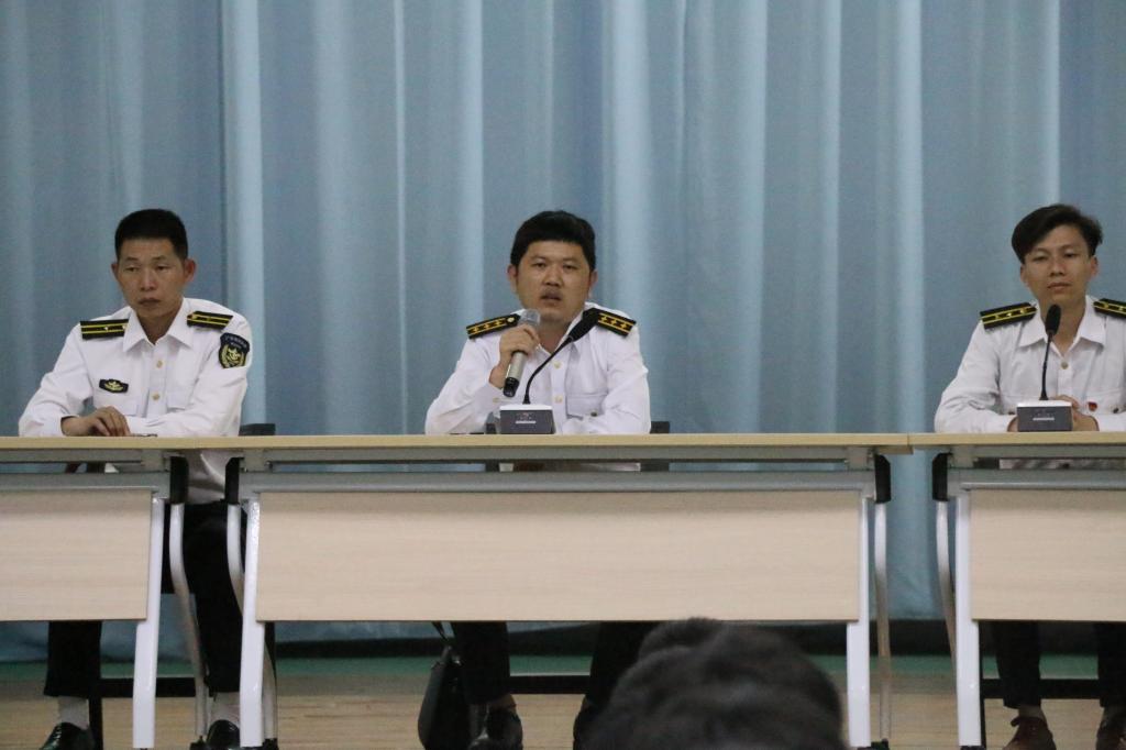 为提升公司新学期航海类专业半军事化教育管理工作的质量,加强各级半军管员工干部队伍建设。3月12日晚,公司在海滨校区礼堂组织召开新学期半军管员工干部会议,公司党委副书记齐昊,副大队长江涛、刘抒睿,辅导员李建龙、邵建勋以及全体半军管员工干部参加了会议。会议由刘抒睿主持。