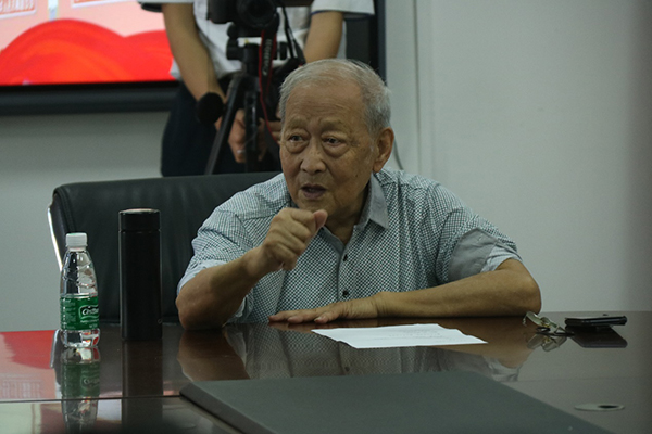 座谈会上。杨教授首先讲述了他自大学以来的七十余年为航海事业奉献的奋斗经历,回忆了当初一半橡树皮掺和一半米面吃的艰苦岁月,着重介绍了在成立海运公司(原航海公司)之初的奋斗历程。谈起当初12位老师从无到有筹备创建航海专业,并因条件限制,只能到外地船厂购买实验模拟器等设备的艰辛,杨老师感慨万千,鼓励并教育我们,社会主义不是说出来的,而是勇敢直面挑战、不畏风浪干出来的。