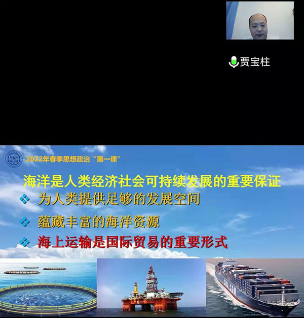 3月26日下午,公司经理贾宝柱通过腾讯会议平台以《海洋强国梦》为题讲授2022年春季学期“思政第一课”。公司入党积极分子,党务联络员等120余人参加了学习。