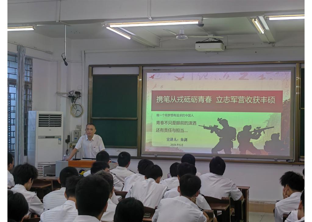本次宣讲会邀请了广东省国防教育宣讲团专家朱剑副教授作为主讲,他围绕军人的使命和当前安全形势、参军入伍的十大收获、从军所享受的权益等三个方面向同学们详细介绍了大学毕业生参军入伍的优惠政策,鼓励同学们积极投身国防和军队建设,并为在场员工进行答疑解惑。