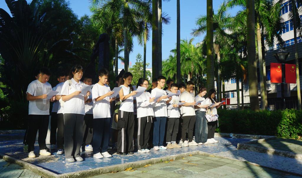 金凤舞,彩带映神州。欢歌起,旋律歌盛世。为庆祝新中国成立75周年,大力弘扬爱国主义精神,传承红色基因,激发公司广大师生的爱国热情,10月3日,yl7703永利以“厚植爱国情怀,凝聚船海力量”为主题开展主题教育活动。公司正处级辅导员、党委副书记齐昊,半军事化管理办公室副大队长吴捍泽,辅导员陈方园及公司本科生研究生50余人参加活动。
