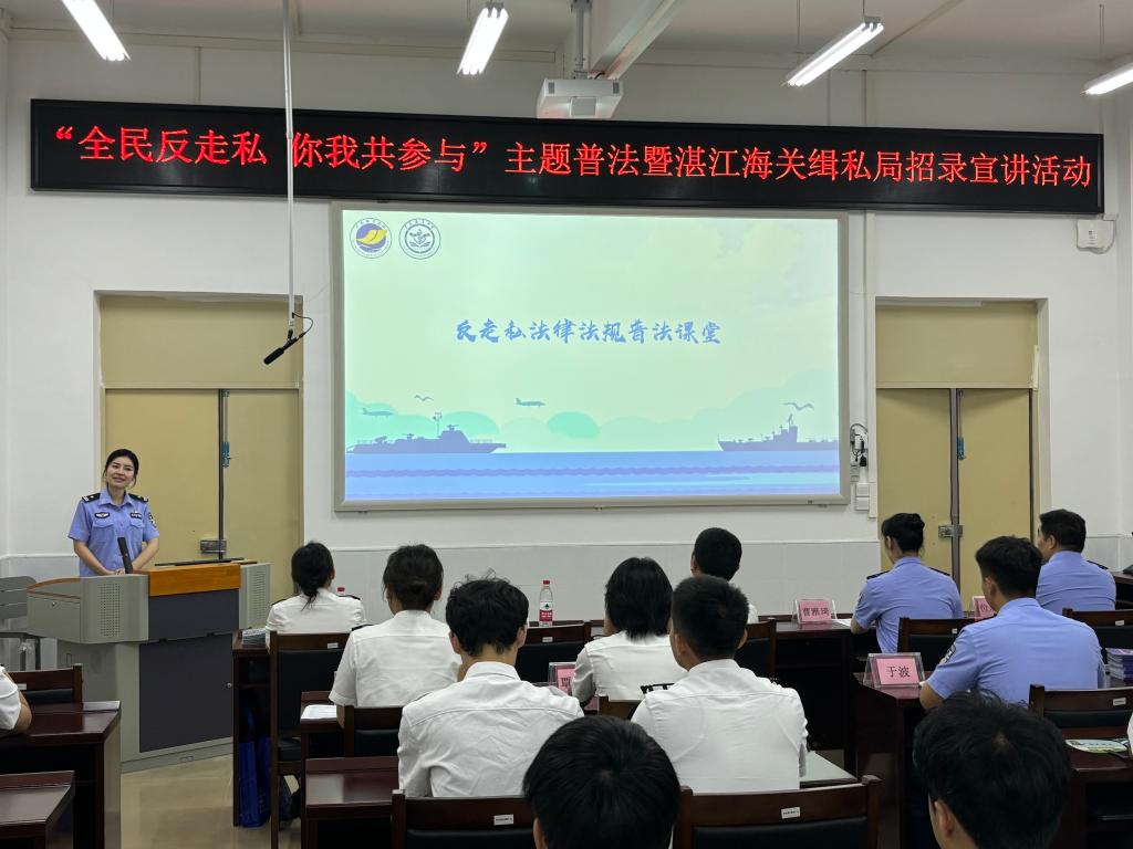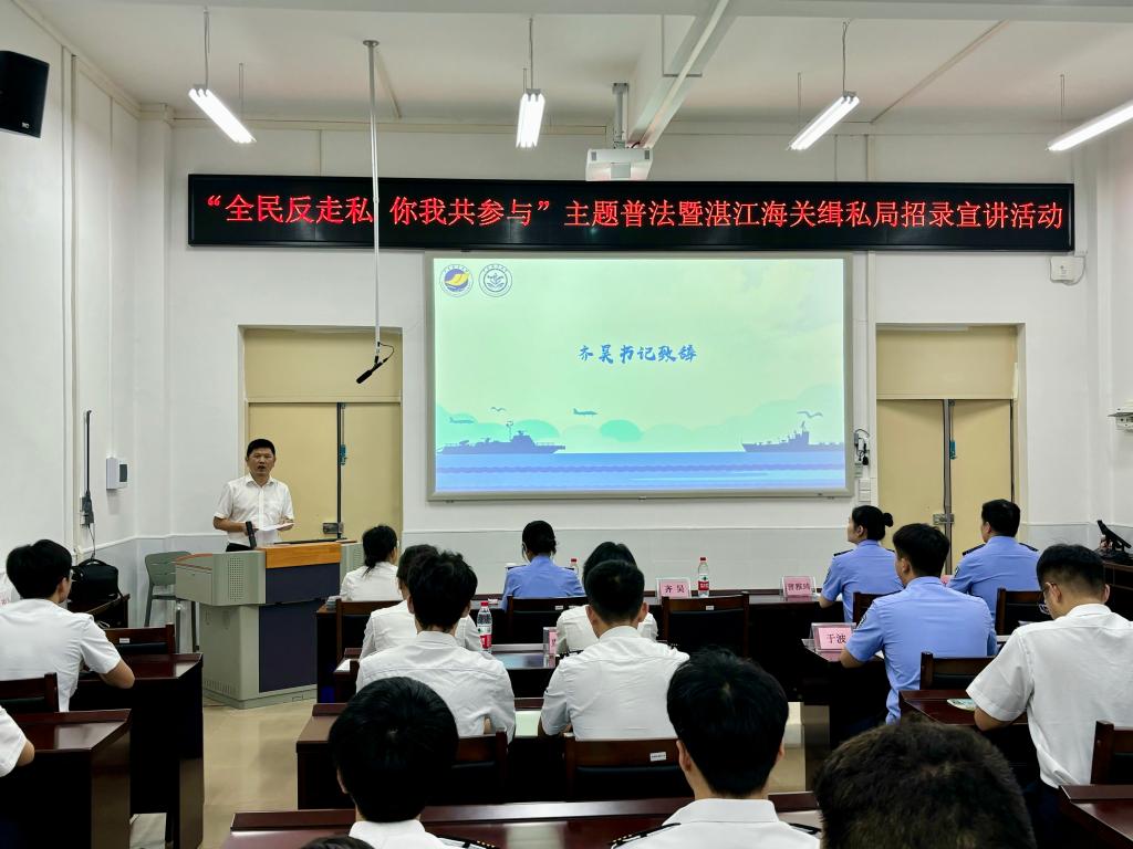 为加大公司普法宣传教育力度,增强员工法治意识,帮助员工全面了解公务员考试,促进毕业生高质量就业。5月16日,yl7703永利联合湛江海关缉私局、湛江海关风控分局在海滨校区举办了“全民反走私,你我共参与”主题普法暨湛江海关缉私局招录宣讲活动。公司正处级辅导员、党委副书记齐昊,湛江海关缉私局警务督察处二科科长曹雅琦,湛江海关缉私局法制处二科科长陈凯诗,湛江海关风控分局非贸风险科副科长王于蓝,公司辅导员张佳宁以及80余名同学等参加了本次活动。