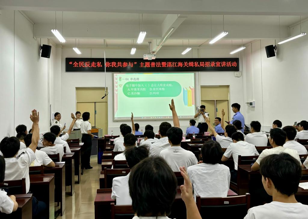 首先,齐昊向湛江海关缉私局和湛江海关风控分局对公司普法工作和就业工作的支持表示感谢,希望同学们牢记新时代青年的责任使命,以法为纲,以志为向,以行为要,主动将个人理想融入国家发展大局。随后,湛江海关缉私局和风控分局的同志向同学们普及反走私、离岛免税等相关法规知识,还结合近年来打击走私犯罪的典型案例,向同学们普及海南离岛免税“套代购”走私的特点、危害及防范措施,引导员工自觉抵制远离走私,做到学法、懂法、守法,并进行了公务员招录宣讲。最后,与会嘉宾与同学们进行了热烈互动,积极解答了同学们在反走私、防“套代购”、考公等方面的疑惑。