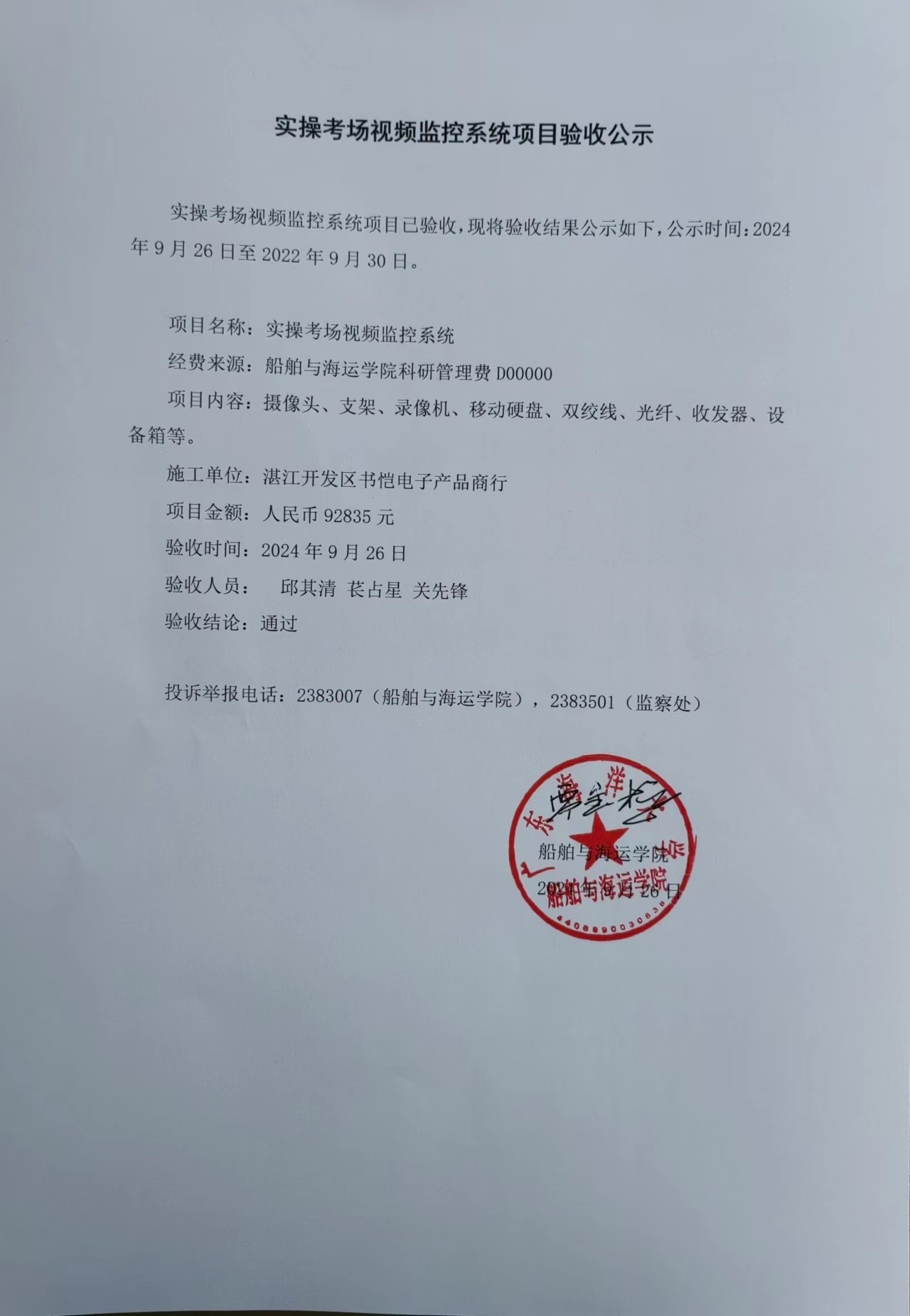 实操考场视频监控系统项目验收公示