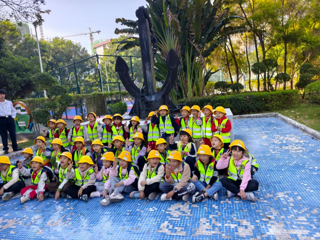 行程的第一站是海滨校区的船锚处。在这里,志愿者们生动地讲述了船锚的重要性及其作用原理,让孩子们对船锚这一看似简单却至关重要的航海设备有了全新的认识。孩子们在船锚雕像前合影留念,记录下了这次难忘的研学之旅的起点。