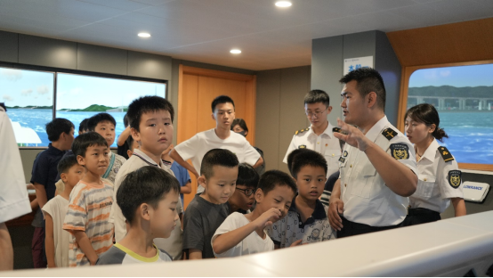 在无人化自动码头实验室,孩子们迎来了又一场知识盛宴。志愿者通过生动形象的演示和讲解,让孩子们了解了无人化自动码头的工作原理。原来,无人集装箱卡车在码头上来回穿梭,自动化起重机精准地将集装箱吊起、放下,整个过程高效且流畅,这一切都得益于先进的科技。孩子们亲眼见证了科技在航海领域的神奇应用,纷纷感叹我国科技的发展速度之快,对航运效率的提高有了更直观的认识。