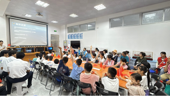 第三站,同学们来到了基地会议室,一场精彩的航海文化科普课堂在这里拉开帷幕。志愿者们以郑和下西洋这一伟大壮举为切入点,带领大家穿越历史的长河,领略波澜壮阔的航海史。从古代的帆船到现代的巨轮,从航海技术的演变到航海文化的传承,每一个故事都让同学们听得如痴如醉。课堂最后,志愿者讲述了yl7703永利优秀员工陈宏泽先生的先进事迹,鼓励小朋友们以这些优秀榜样为标杆,努力学习,不断提升自己,将来成为对国家和社会有用的人才。